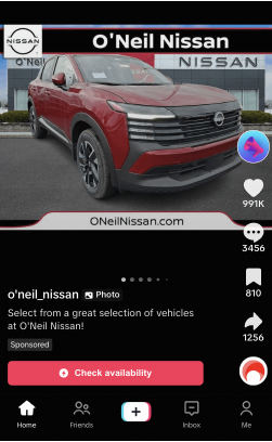 TikTok’s inventory-based advertising solution offers an upgraded user experience that compresses the shopping journey and uses automotive-specific data connections to drive better results for your dealership. Automotive Ads leverage your catalog and website event signals to deliver a dynamic user experience based on their observed preferences.