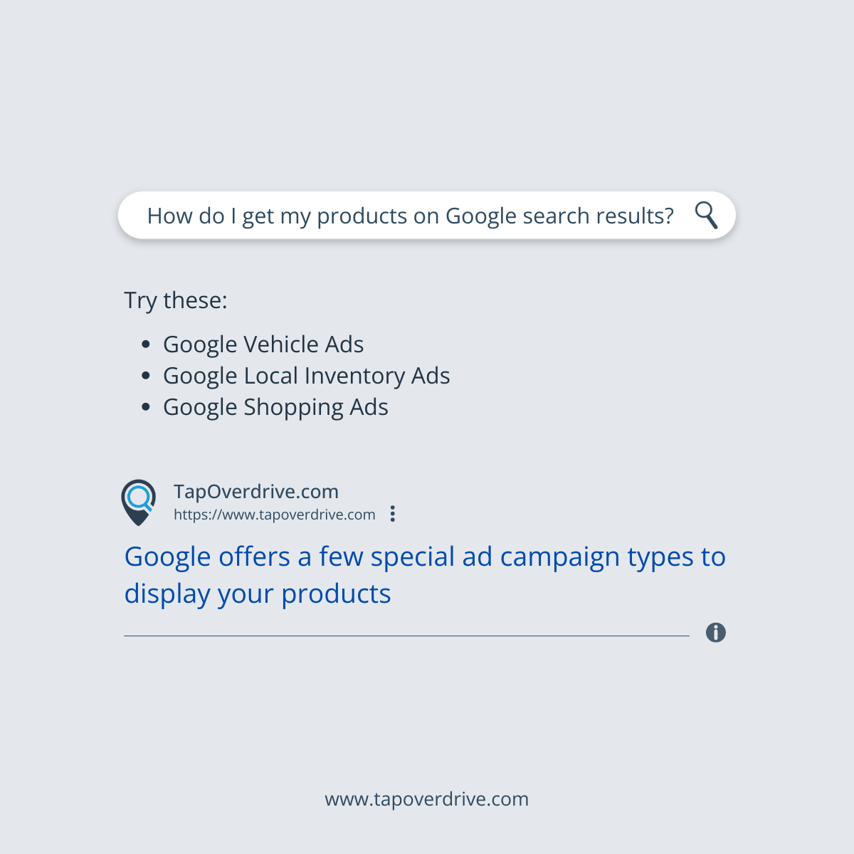 Shopping ads use your existing product data to decide how and where to show your ads. Google uses your product details to match a user’s search to your ads, making sure to show the most relevant products.
