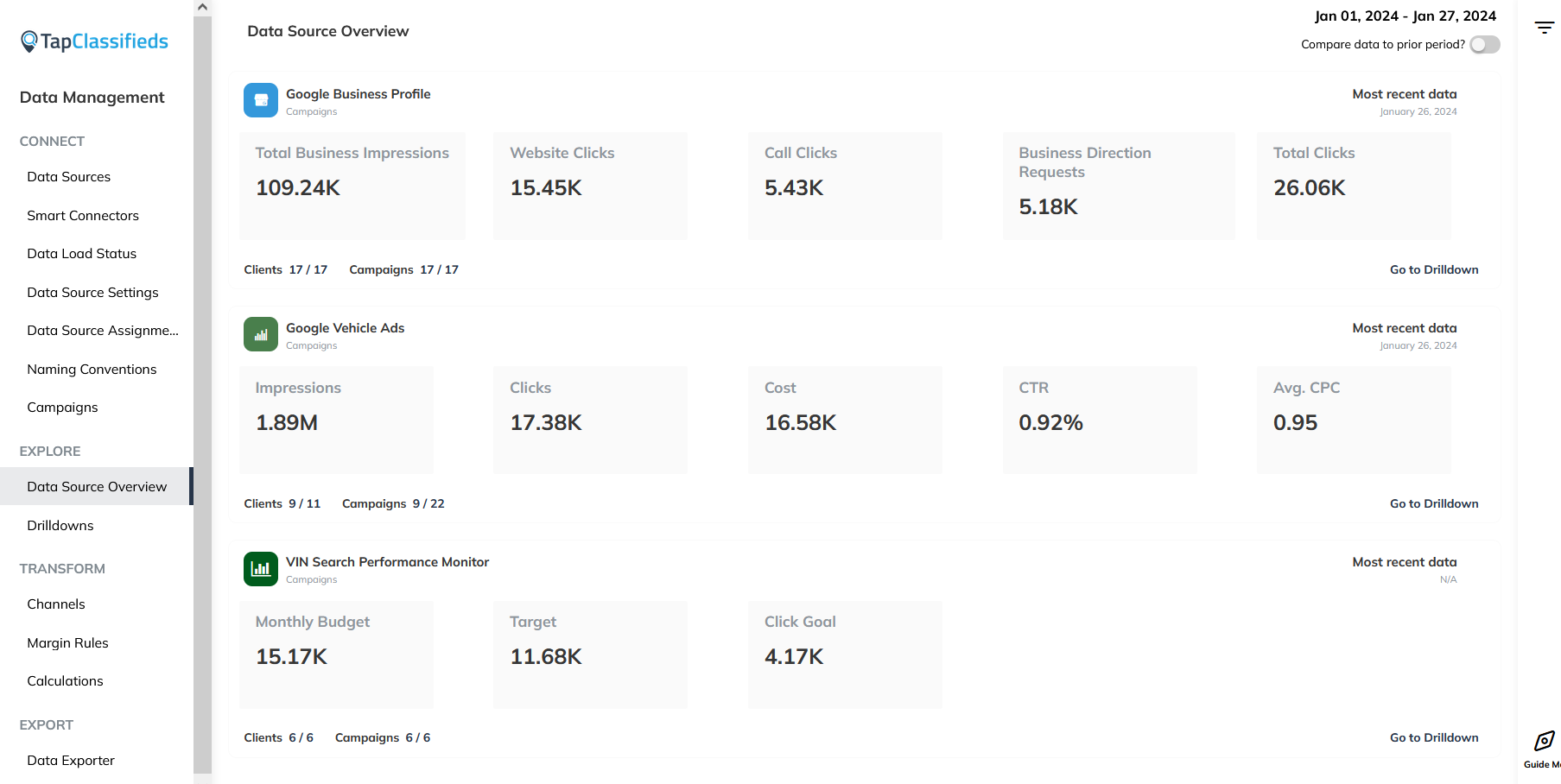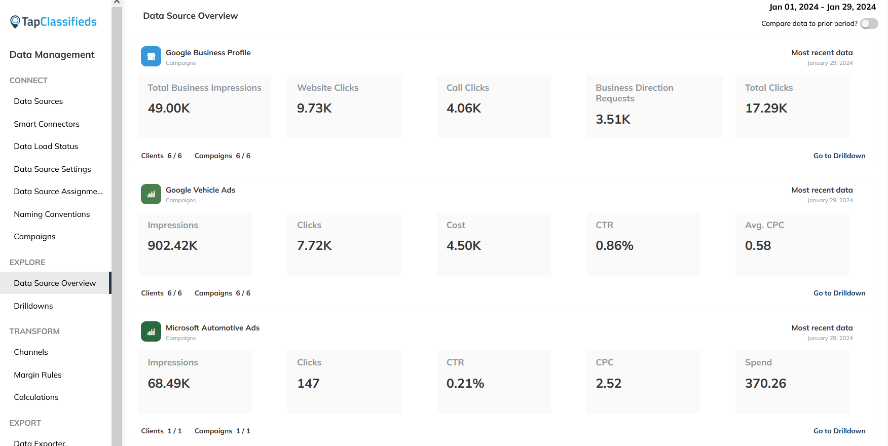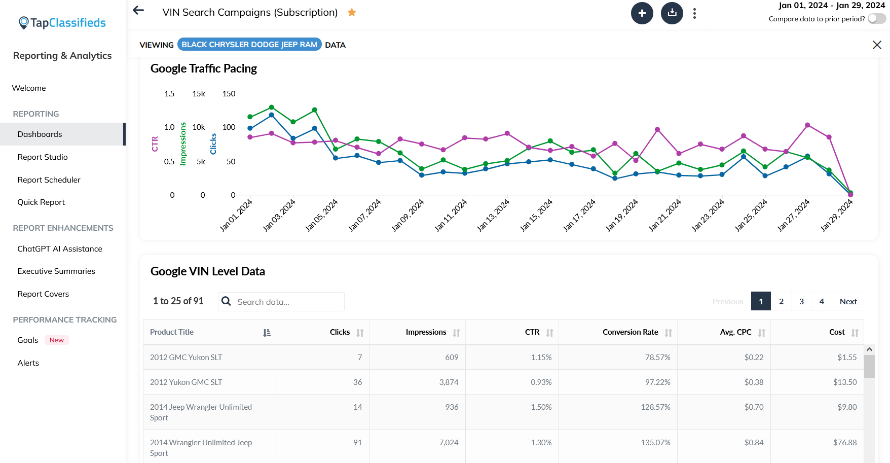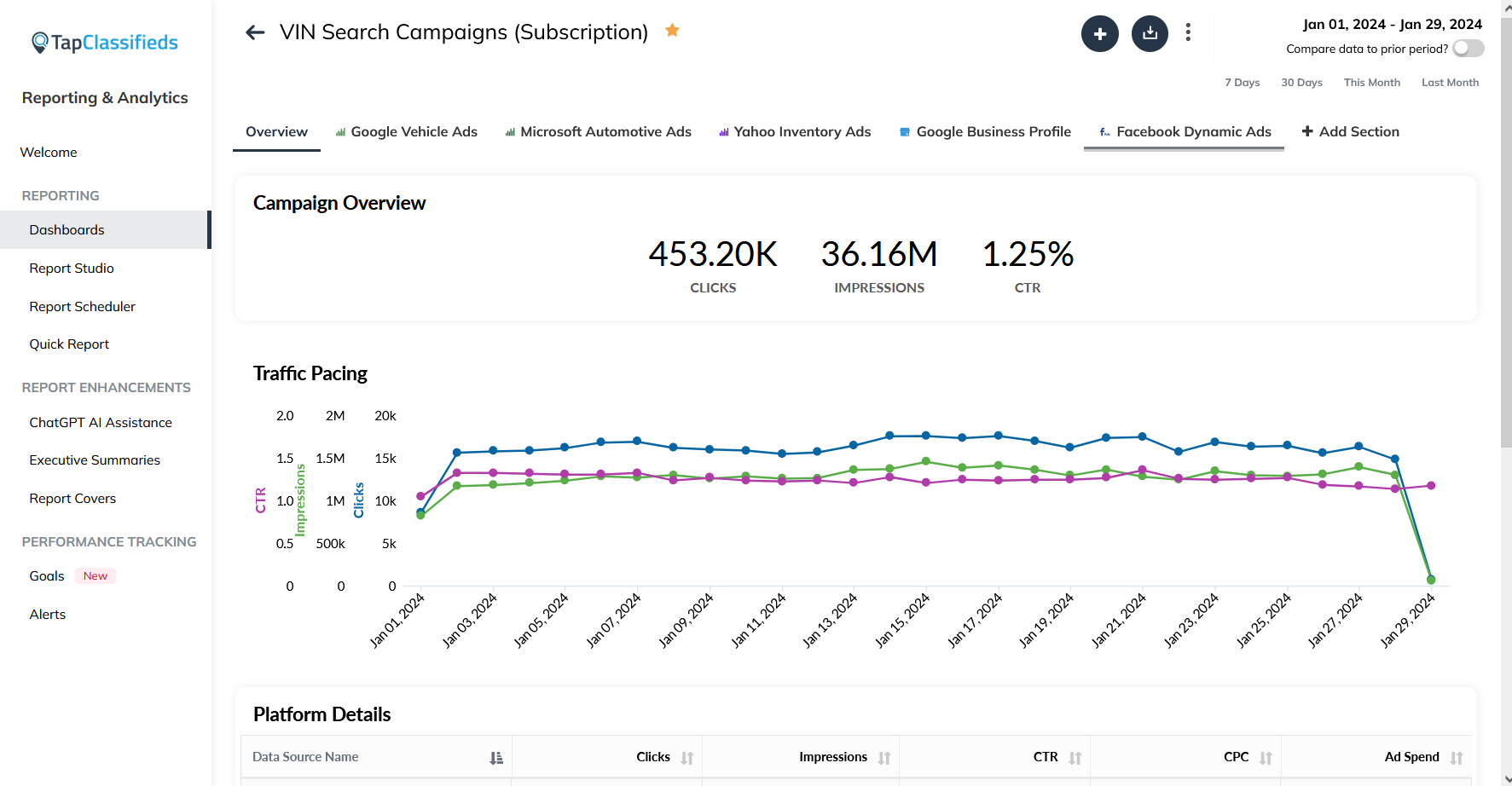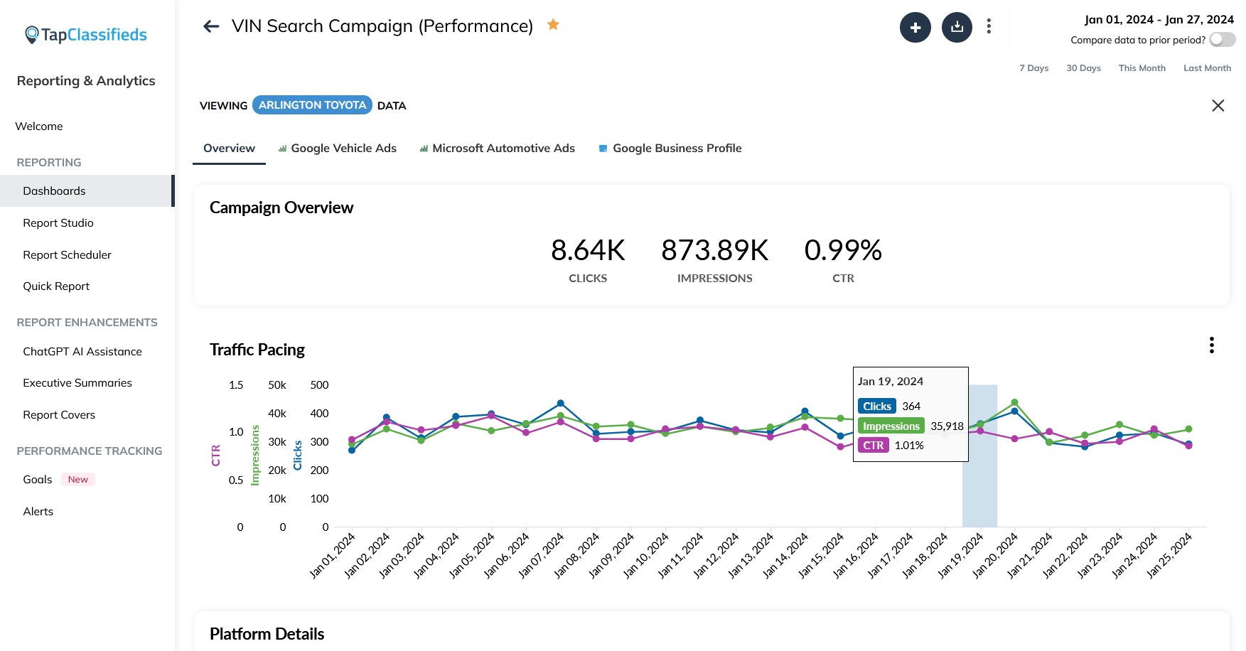 Performance review provides crucial data on lead generation cateogrized by platform, traffic and sales based on specific inventory information, and customer interaction trends based on time and day. See all this important information about your business’ performance in the TapOverdrive system for campaign review and optimization.