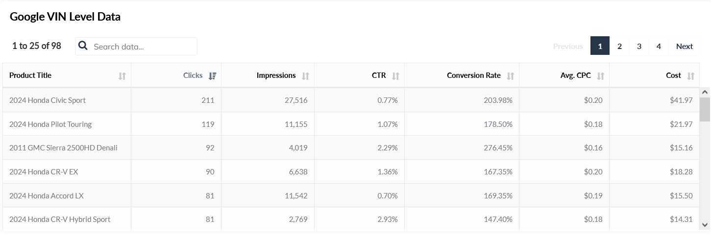 Our analytics dashboard provides a visual overview of campaign results documented by platform with details on how your leads and inventory are performing over time. Calls, chats, emails, forms, and texts are all recorded and can be used for training or to review campaign performance and customer communication.