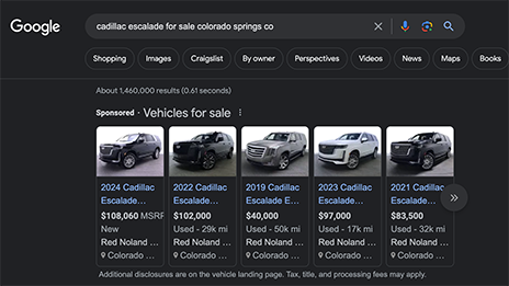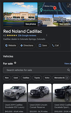 Own your market and be more competitive with rival dealerships and e-tailers with ads and search solutions that help establish and promote your dealership brand on the most popular search platform. Google solutions drive traffic to your website and engage high purchase-intent shoppers to increase showroom visits.