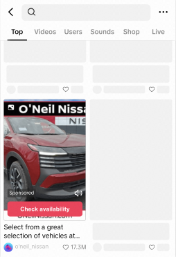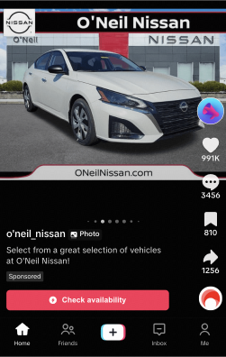 TikTok’s inventory-based advertising solution offers an upgraded user experience that compresses the shopping journey and uses automotive-specific data connections to drive better results for your dealership. Automotive Ads leverage your catalog and website event signals to deliver a dynamic user experience based on their observed preferences.